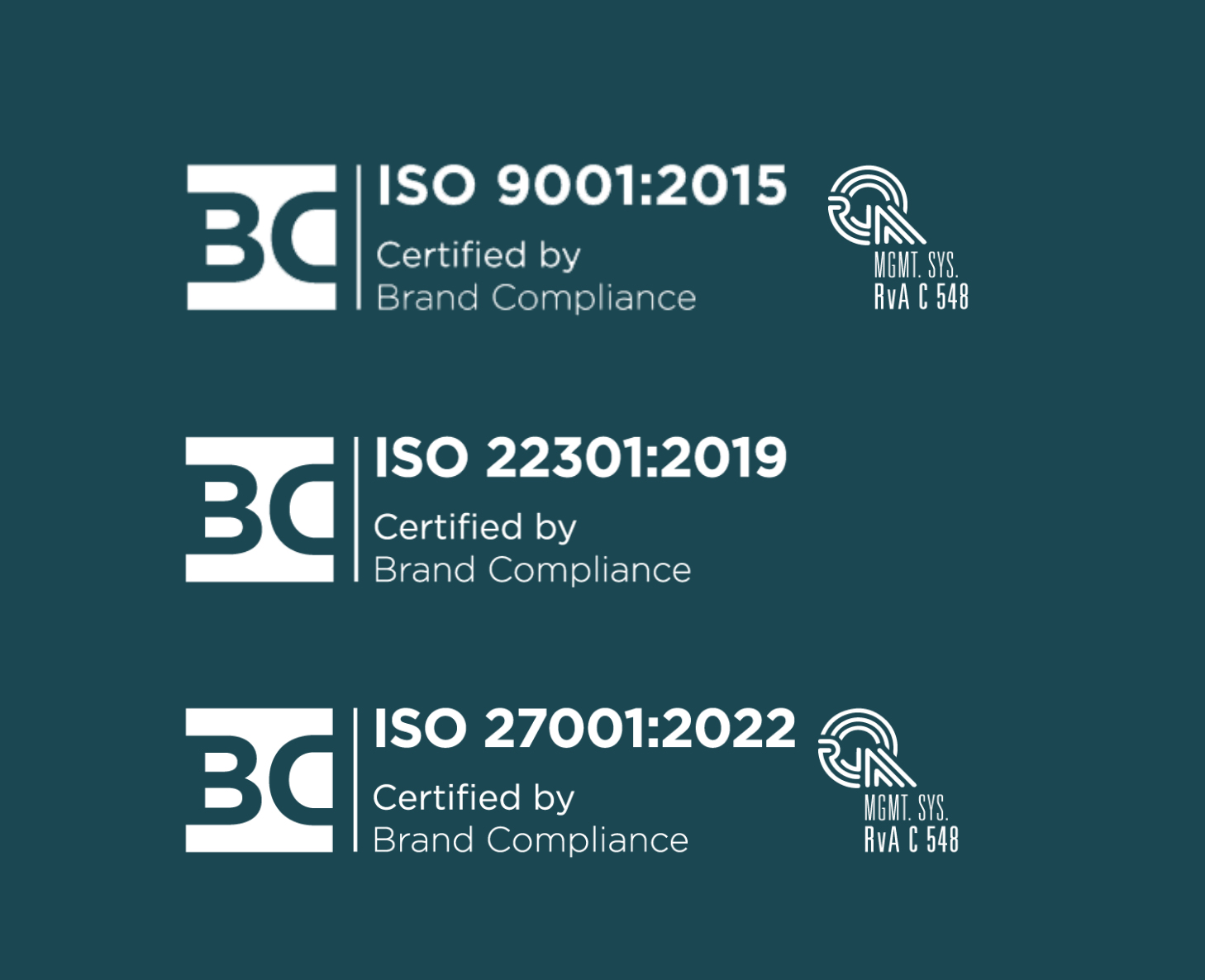 We have robust and comprehensive systems and procedures in place, including internal and external auditing, to ensure ongoing compliance, in line with our commitment to meeting the highest standards of information security, business continuity and quality management.